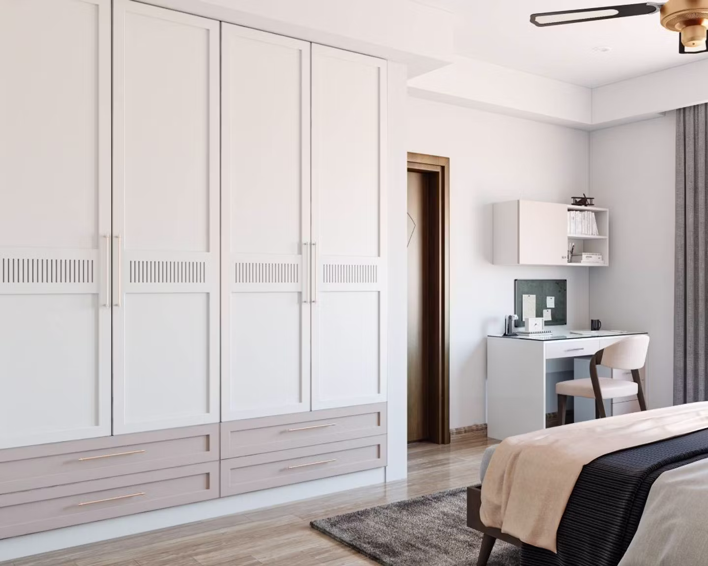 Woodware's custom interior solutions, featuring elegant modular kitchens, floor-to-ceiling wardrobes, innovative storage options, and stunning flooring. Our designs blend aesthetics with functionality, ensuring every inch of your space is optimized for beauty and practicality.